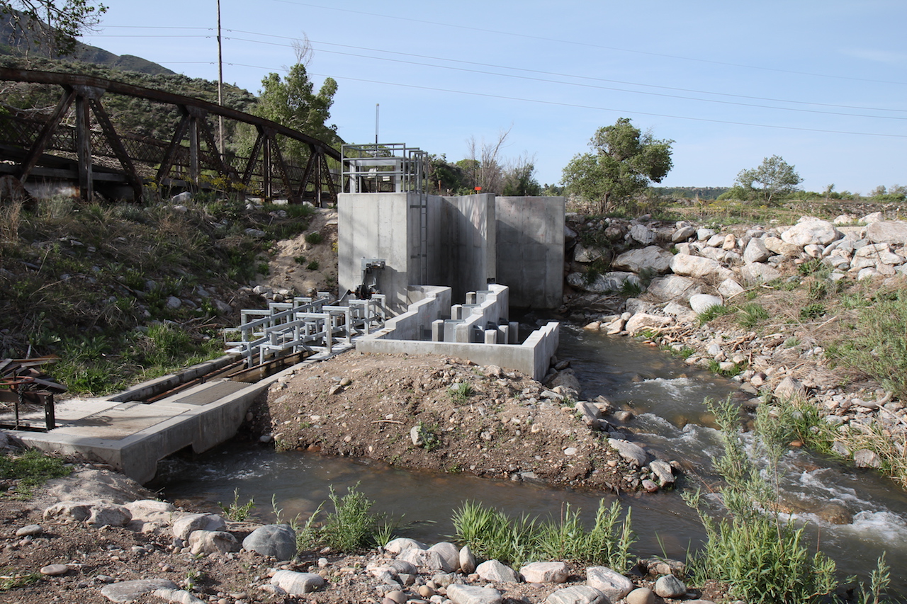 This photo shows the infrastructure improvements made to the Lower Weber River Diversion. This includes fish passage, screens and a brush system to clean screens. Trout Unlimited photo.