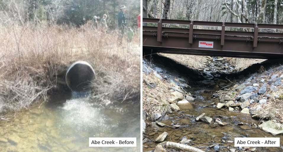 Working with our partners at the Forest Service and the Fish and Wildlife Service, we obliterated over 100 miles of unused roads, decreasing erosion on about 85,000 acres of forest. Old culverts were replaced with bridges, allowing native brook trout to migrate in response to drought and flooding.