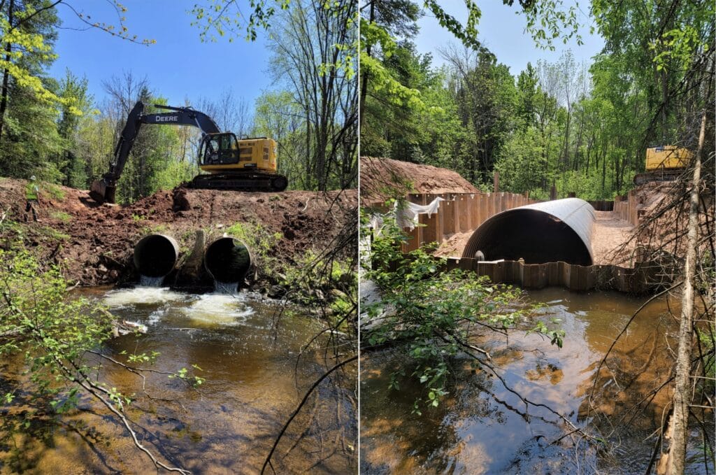 In 2023, we carried out our first road-stream crossing project in the Lake Superior basin on Wisconsin’s Wilson Creek. Next year, we’ll have reconnected the entire stream with two additional restoration projects.