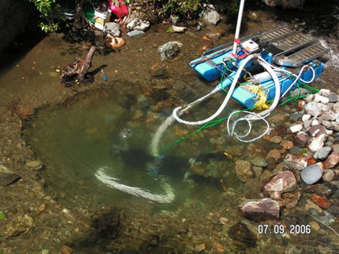 A form of mining that uses gas-powered dredges to vacuum-up rocks, gravel, and sediment from the bottom of creeks and rivers to search for gold.