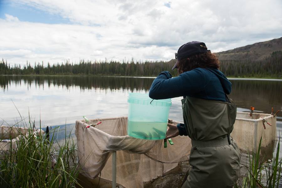 The analysis of DNA signatures in water samples to determine the presence or absence of different fish species in a body of water is a fast and effective means of prioritizing restoration work across a broad landscape of potential sites. CCF funding in both 2015 and 2016 put the “E-DNA” tool, a rare commodity, into the hands of TU staff and volunteers. As just one example in 2019, we collected over 700 samples in a large interconnected Lahontan cutthroat trout watershed to map the presence of non-native rainbow and brook trout and inform future management needs.