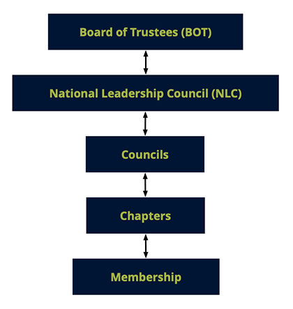The Board of Trustees (BOT), meets in person three times a year to review and approve financial and organizational decisions. The Nominating Committee of the BOT nominates individuals to be the 22 members of the BOT. The Chairman and Secretary of the NLC fill two of the BOT positions. The remaining eight positions are filled by Grassroots Trustees – nominated by the NLC. All BOT members serve two-year terms and can serve up to three consecutive terms.