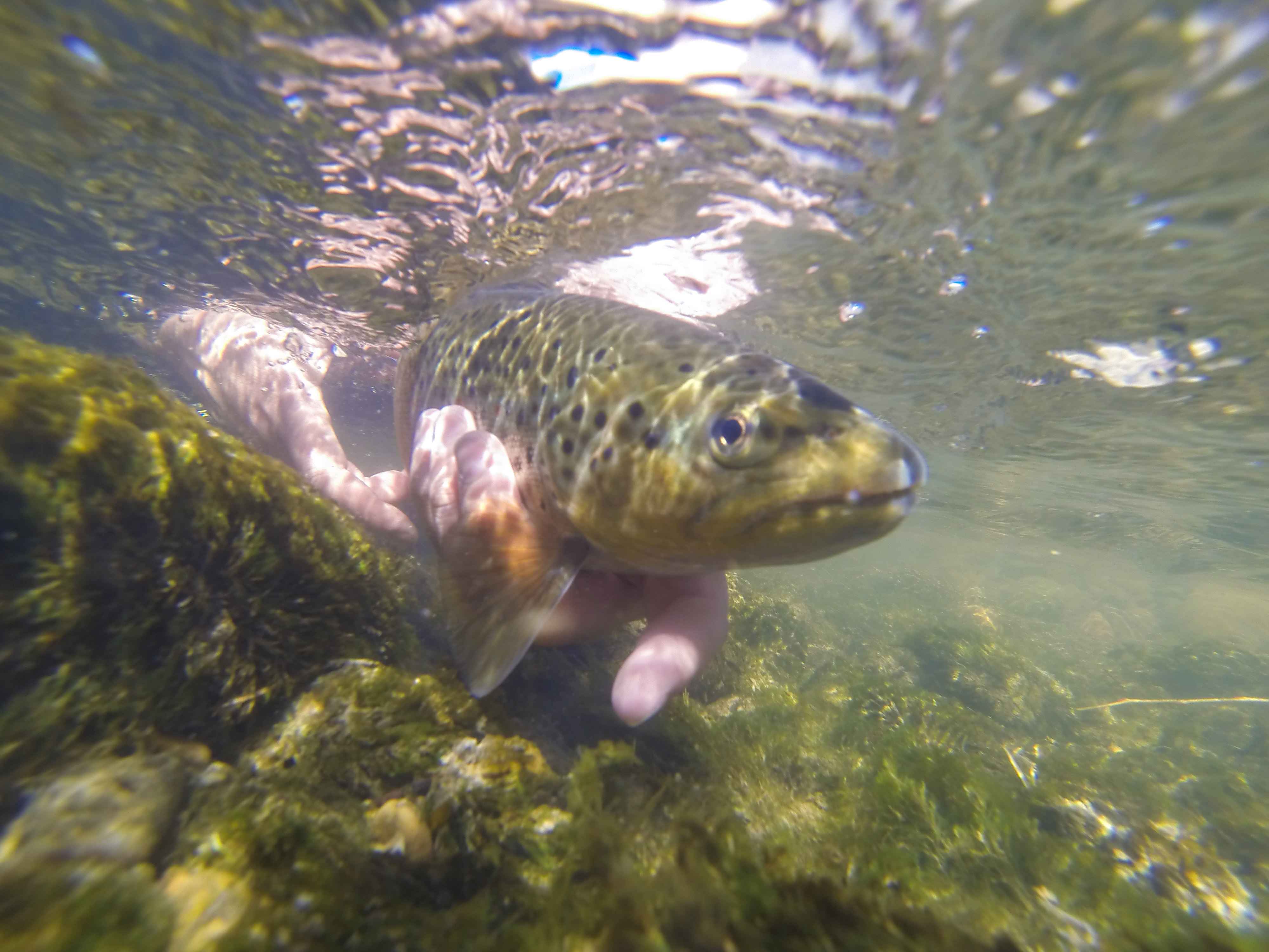 An angler on the Weber River releases a brown trout. Trout Unlimited photo.