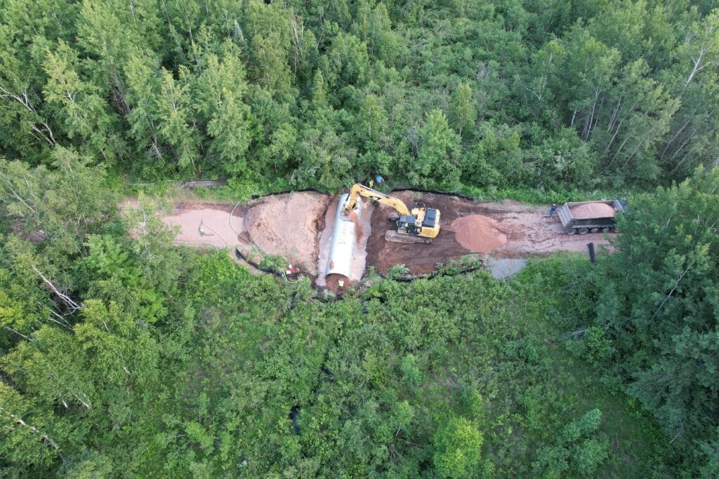 In 2023, we carried out our first road-stream crossing project in the Lake Superior basin on Wisconsin’s Wilson Creek. Next year, we’ll have reconnected the entire stream with two additional restoration projects.